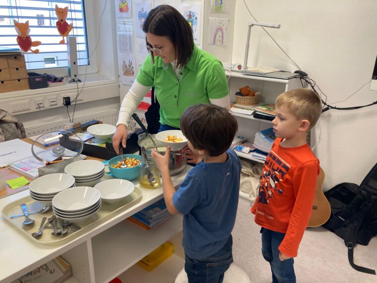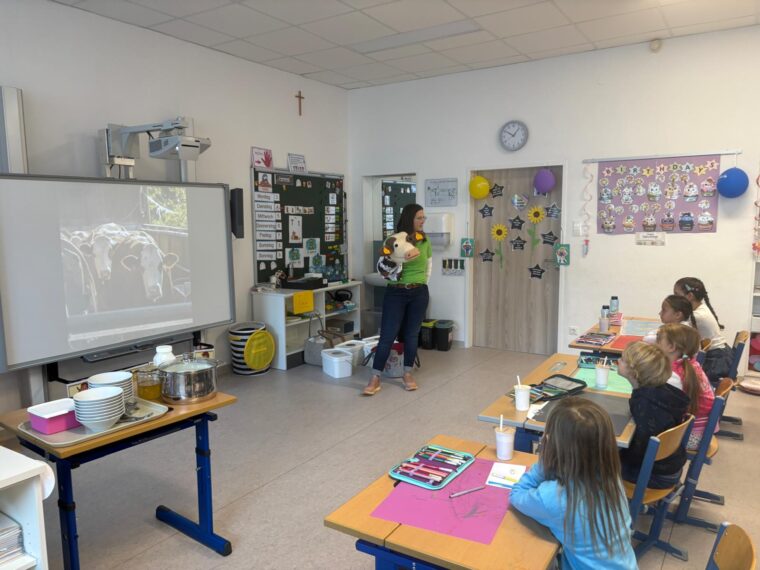 Die Kinder der vierten Klassen bekamen Besuch von Seminarbäuerin Kristina Ungersböck. Frau Ungersböck erzählte den Kindern von ihrem Hof in Reitersberg, ihren Tieren und der Arbeit auf einem Bauernhof. Auch der Weg der Milch von der Kuh bis zur Molkerei wurde besprochen. Highlight des Vormittags war aber sicher die Verkostung vom frischen hausgemachen Joghurt. Dieses ist nicht nur ein Naturprodukt und sehr gesund, sondern schmeckte auch hervorragend – Dankeschön!