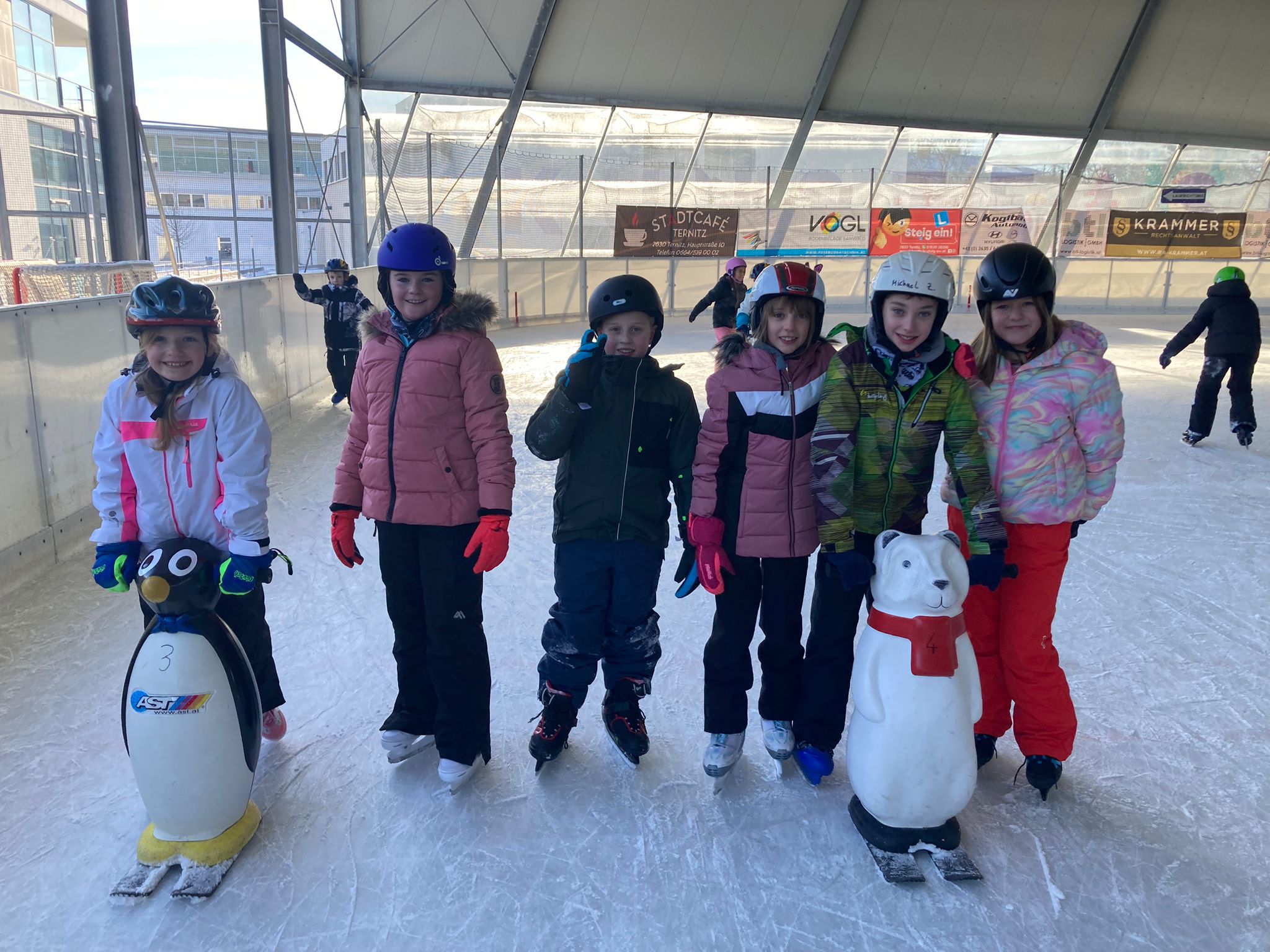 Das Eislaufen in der Eisarena Ternitz war für die Kinder der dritten Klasse ein aufregendes Erlebnis, das jede Menge Spaß und Action gebracht hat. Ob mit ausgeborgten Eislaufschuhen oder eigenen Schuhen – mit der Hilfe von Schiebetieren ein paar Runden übers Eis zu laufen, war für die Burschen und Mädchen eine coole Sache. Eine sportliche Herausforderung, der sich alle gern gestellt hatten!