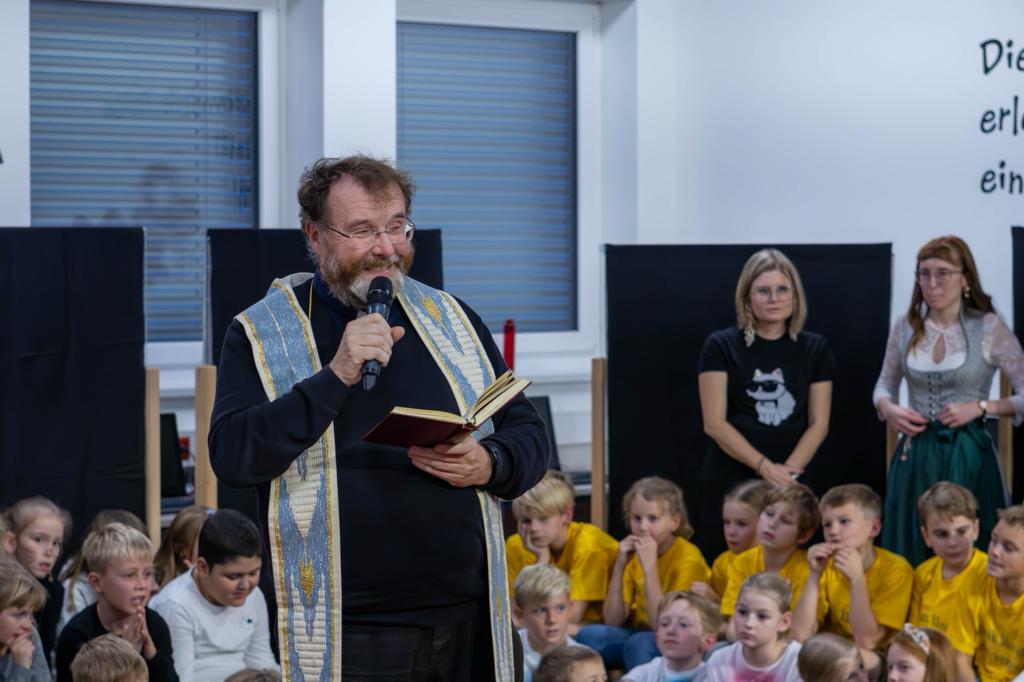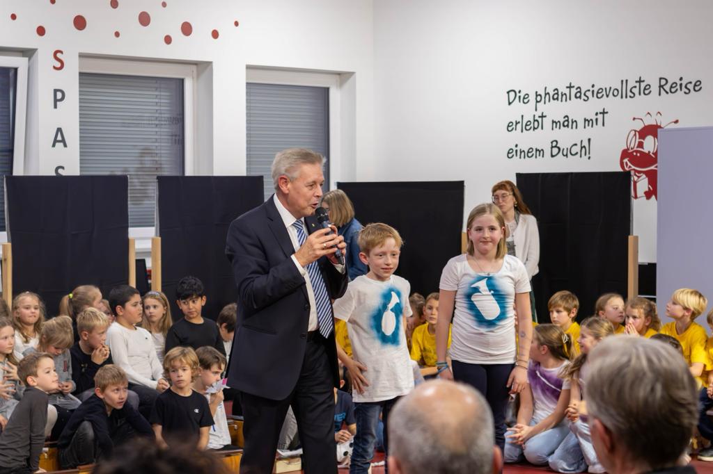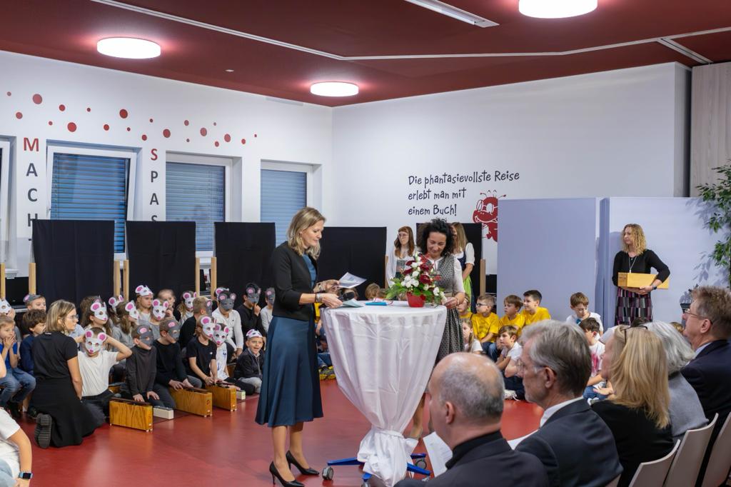 Die Eröffnung und Begrüßung im festlichen Ambiente des Schulsaals erfolgte durch Schulleiterin Carmen Picher gemeinsam mit Schulobfrau Waltraud Ungersböck. Die Kinder der Volksschule umrahmten die Feier mit musikalischen Einlagen und Interviews mit mehreren Gästen aus der Ehrenriege. Neben einer Reihe von Dankesworten und dem Überreichen von Präsenten präsentierten Schulobfrau Waltraud Ungersböck und Schulleiterin Carmen Picher unter anderem interessante Details zum Umbau bzw. zum geschichtlichen Hintergrund der Schule.