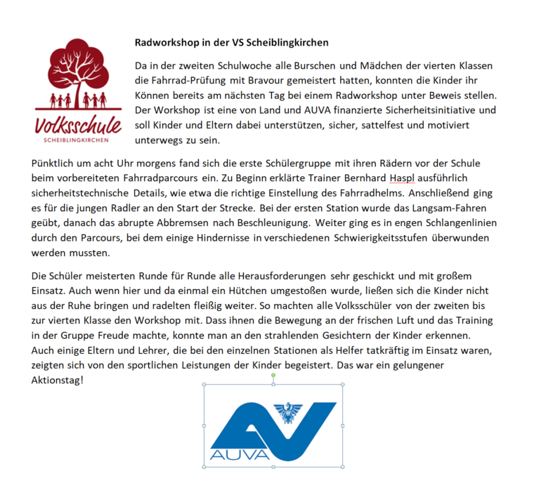 Der AUVA-Radworkshop, eine vom Land NÖ und der AUVA finanzierte Sicherheitsinitiative, soll Eltern und Kinder unterstützen, sicher auf dem Fahrrad unterwegs zu […]
