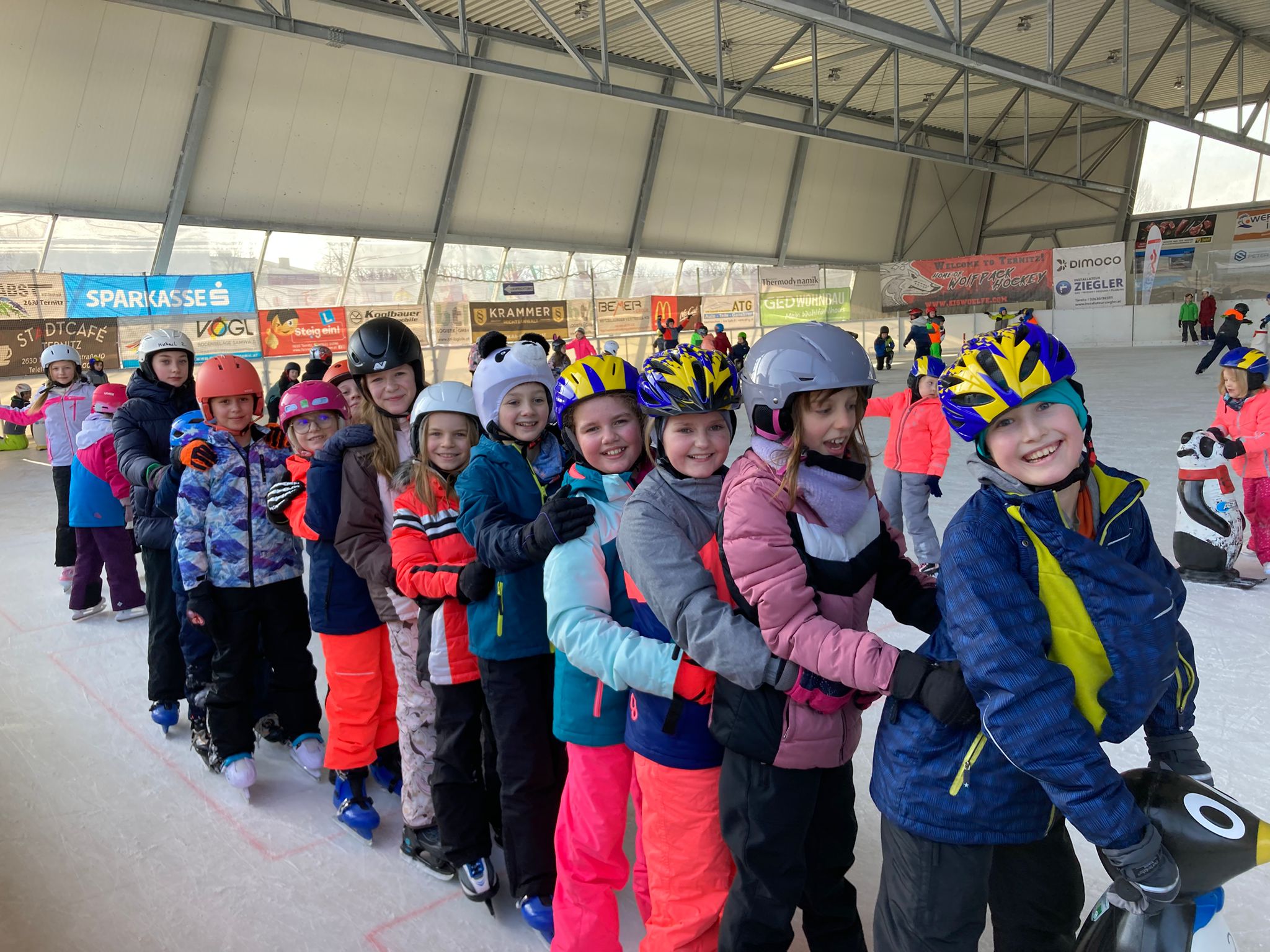Einen ganzen Schultag lang verbrachten die Volksschüler in der Eislaufarena in Ternitz. Die Kinder hatten einen Riesenspaß dabei, ihre Runden über das Eis zu ziehen. Für die Schülerinnen und Schüler, die noch nicht so sicher auf dem Eis unterwegs waren, standen Schiebetiere zur Verfügung, die halfen, das Gleichgewicht zu halten. Ein cooles Erlebnis und eine sportliche Herausforderung für die Kids!