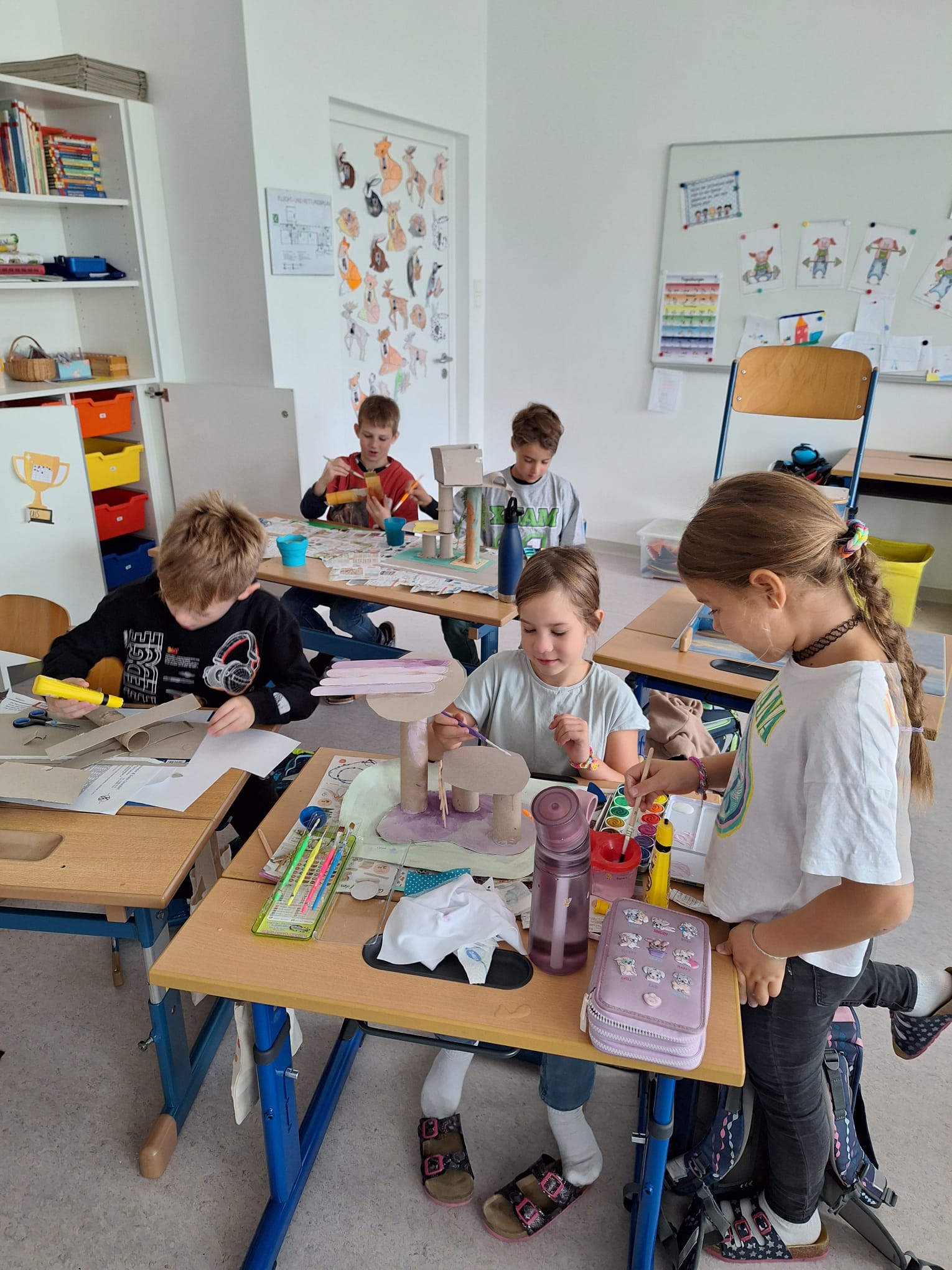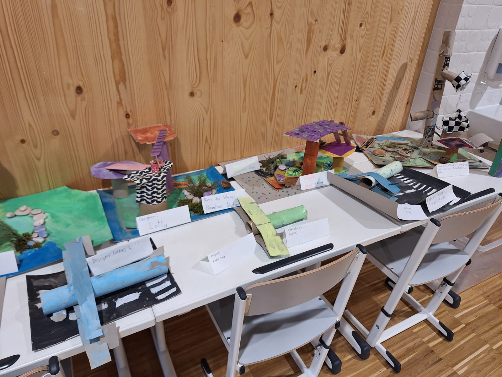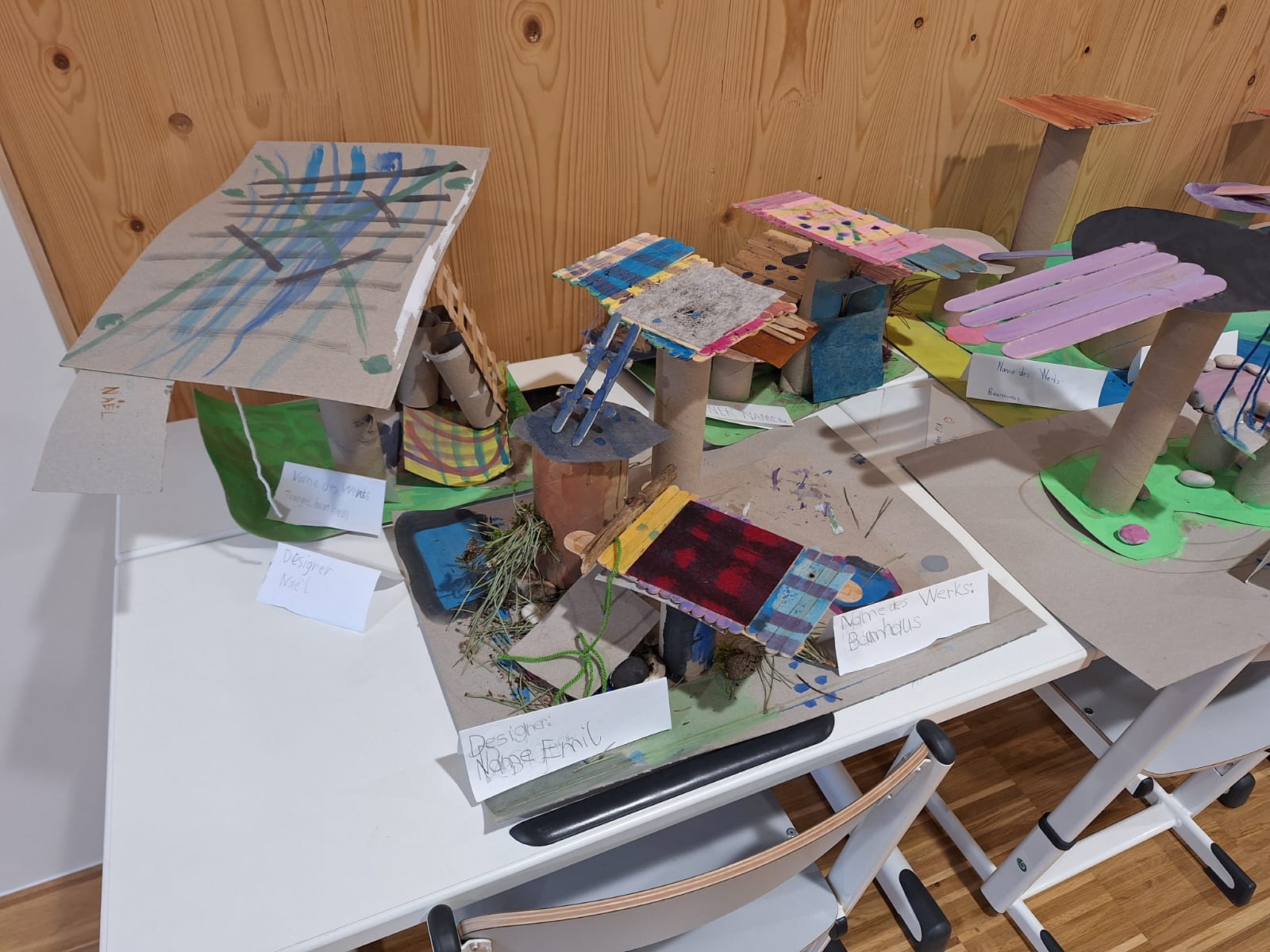 In der zweiten Klasse waren die Kinder sehr kreativ und gestalteten aus Natur- und gebrauchten Verpackungsmaterialien neue Objekte. Dieses Mal waren es Baumhäuser und Flugzeuge, die von den Buben und Mädchen mit viel Geschick und Fantasie gebastelt wurden. In einer eigenen Ausstellung konnten die Mitschüler aus den anderen Klassen die fertigen Kunstwerke bewundern!