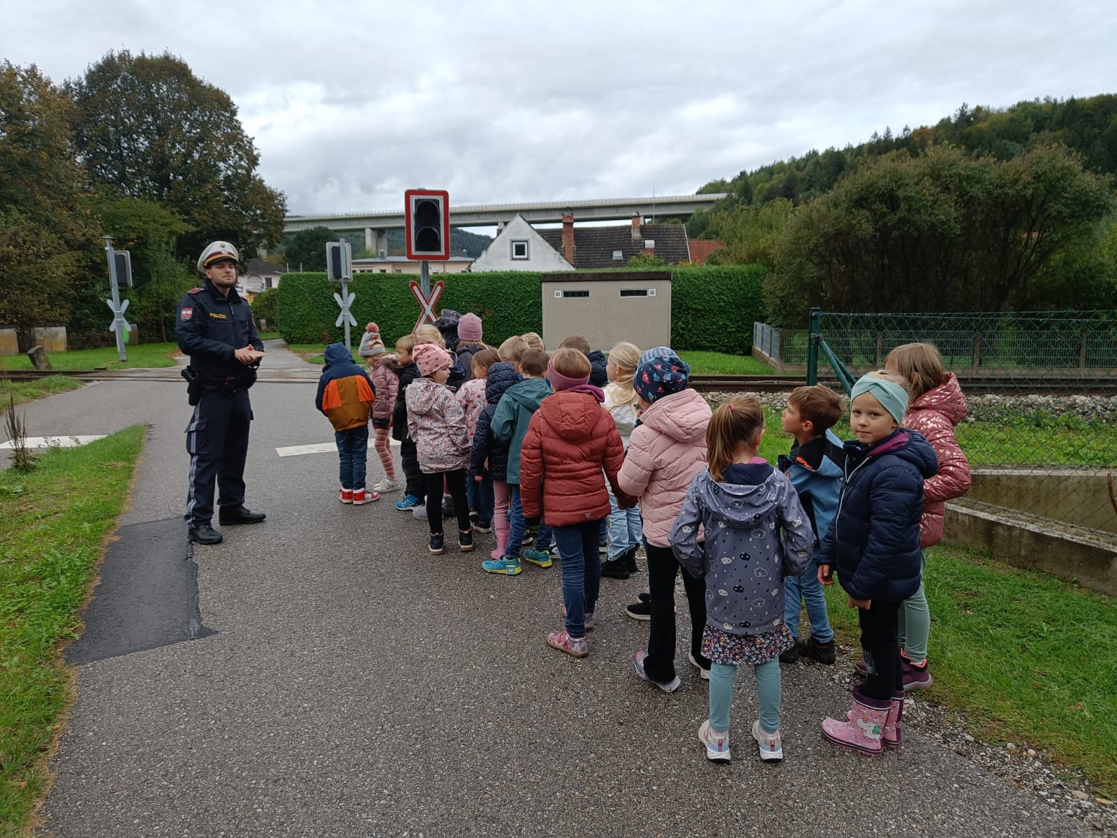 Sicherheit im Straßenverkehr ist in der VS Scheiblingkirchen ein großes Thema. Um den Kindern zu helfen, mehr Sicherheit im Straßenverkehr zu bekommen und das richtige Verhalten einzuüben und zu festigen, wurde ein Sicherheitstraining mit einem Polizisten organisiert. Beim Lehrausgang mit der Polizei wurde das Überqueren von Straßen und Bahngleisen sowie das richtige Verhalten am Gehsteig besprochen und geübt. Eine wichtige Lektion für die erste und dritte Klasse!