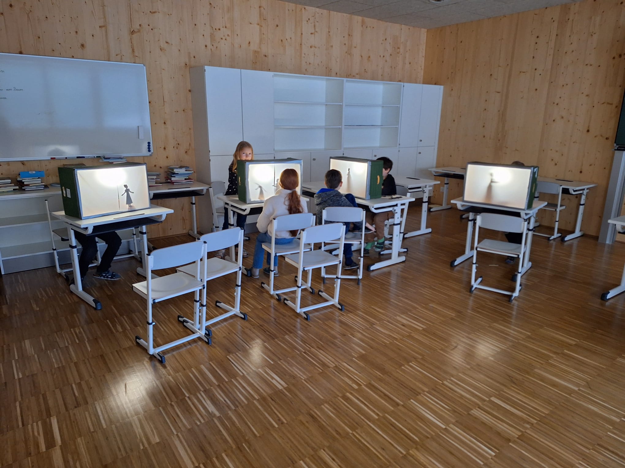 Auf der ersten Station ging es um das Aschenputtel. Die Kinder bastelten Märchenfiguren und bekamen eine Vorführung mit einem Schattentheater. Auf der Froschkönig-Station sangen die Burschen und Mädchen ein Froschlied, erzählten das Märchen nach, arbeiteten mit Bildkarten und lösten Rätsel dazu auf. Auf der Schneewittchen-Station wurde ein cooler Rap einstudiert und mit Spiegelschrift geschrieben – in Anlehnung an den Spiegel des Schneewittchens. Ein Hexenhaus aus Karton wurde auf der Station von Hänsel und Gretel gebastelt – auch Szenen mit den Märchenfiguren spielten die Kids nach.