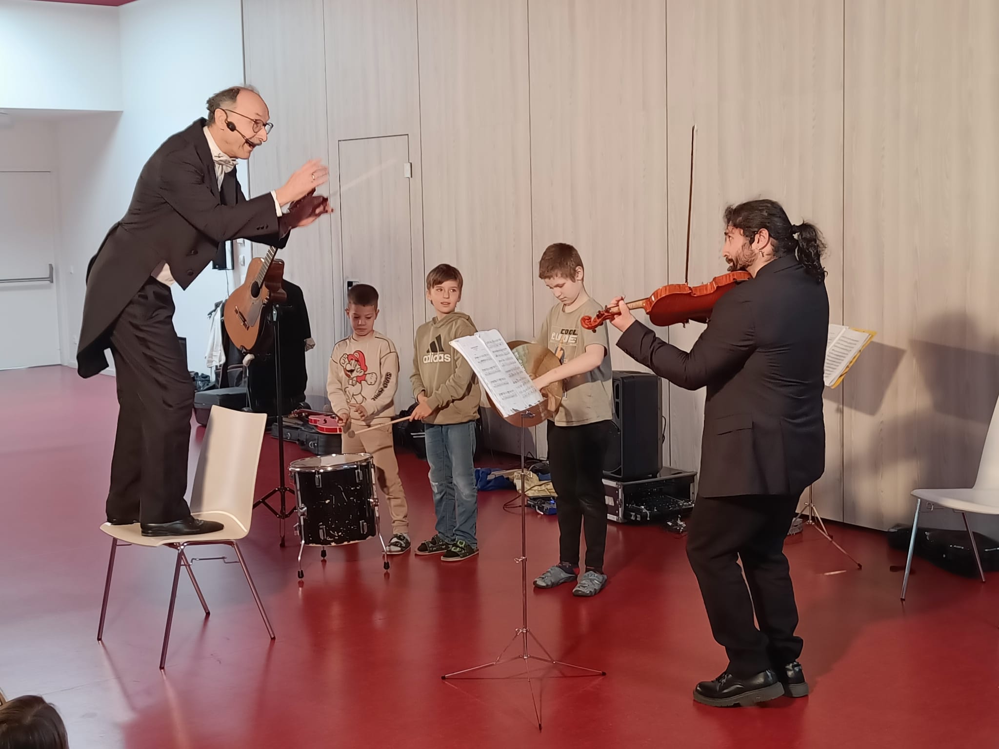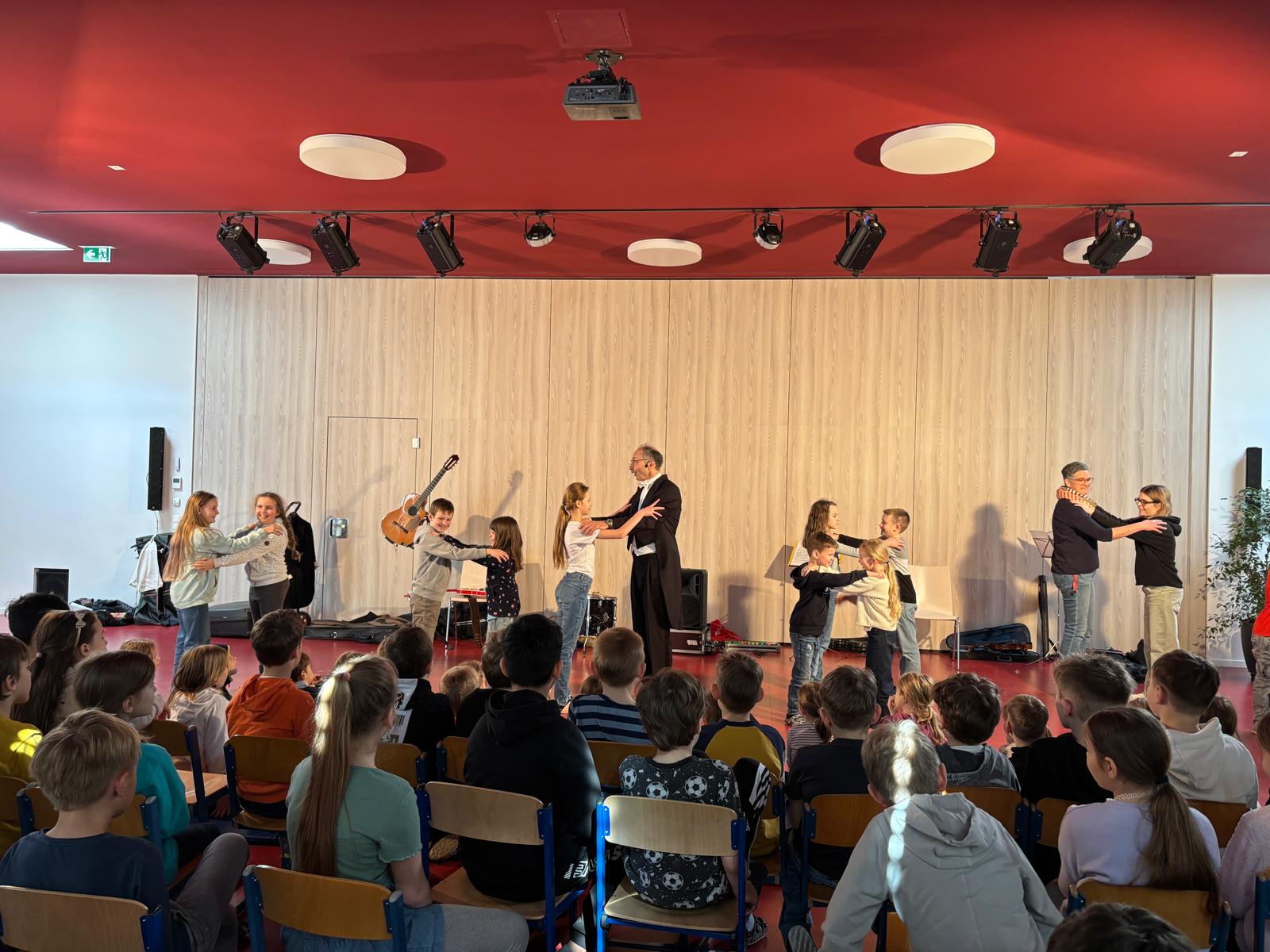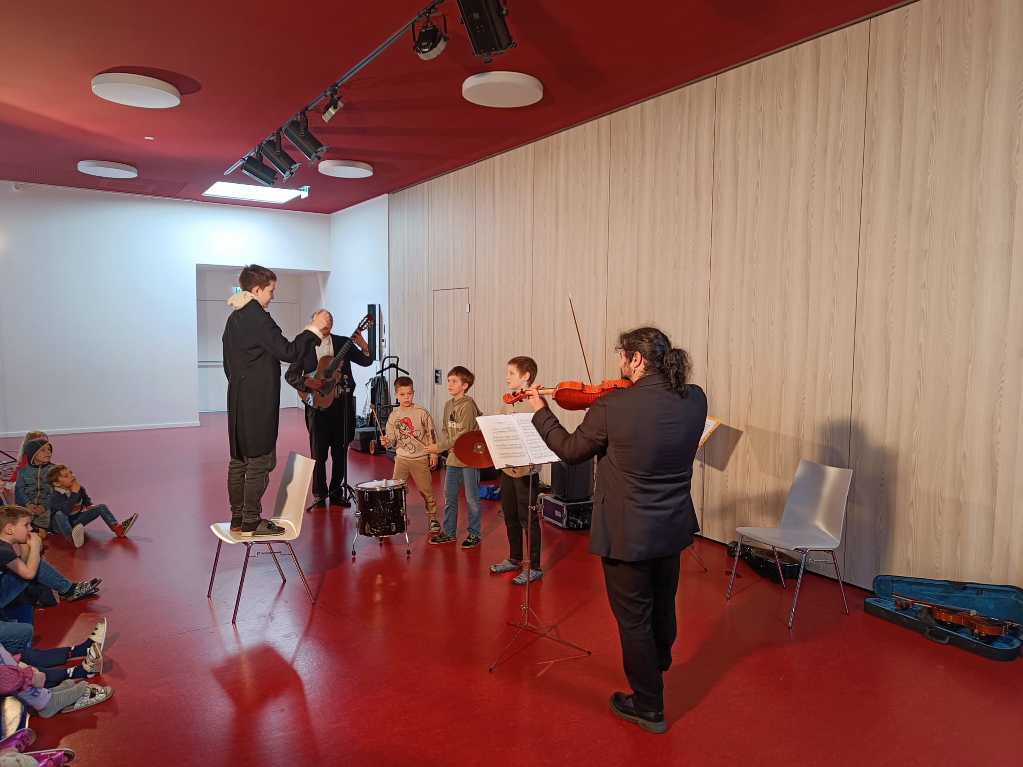 Für viel Begeisterung sorgte das Mitmachtheater in der Volksschule. Bei der Vorführung ging es anlässlich des 250-Jahresjubiläums von Johann Strauß um die berühmte Musikerfamilie Strauß. Die vortragenden Musiker erzählten die spannende Historie der Familie, ihre berühmten Kompositionen und die Musikinstrumente, die dabei gespielt werden. Auch über den Aufbau eines Orchesters und den Dirigenten erfuhren die Kinder interessante Fakten. Die Kids waren voll im Programm integriert und durften bei vielen Musikstücken sowie Tänzen und sogar beim Dirigieren mitmachen. Die Kinder freuten sich sehr, dass sie so Vieles ausprobieren durften!
