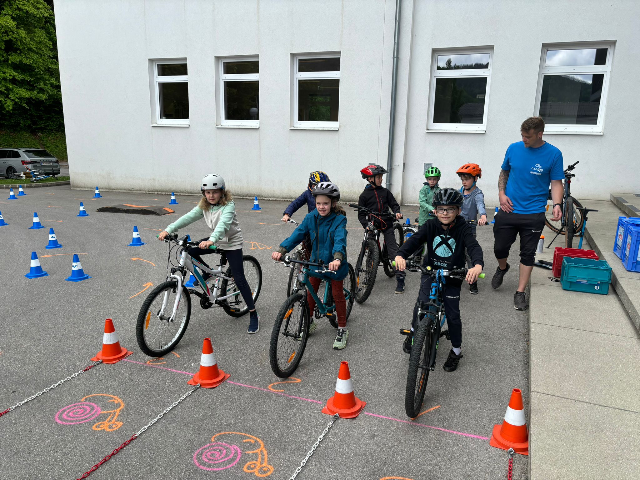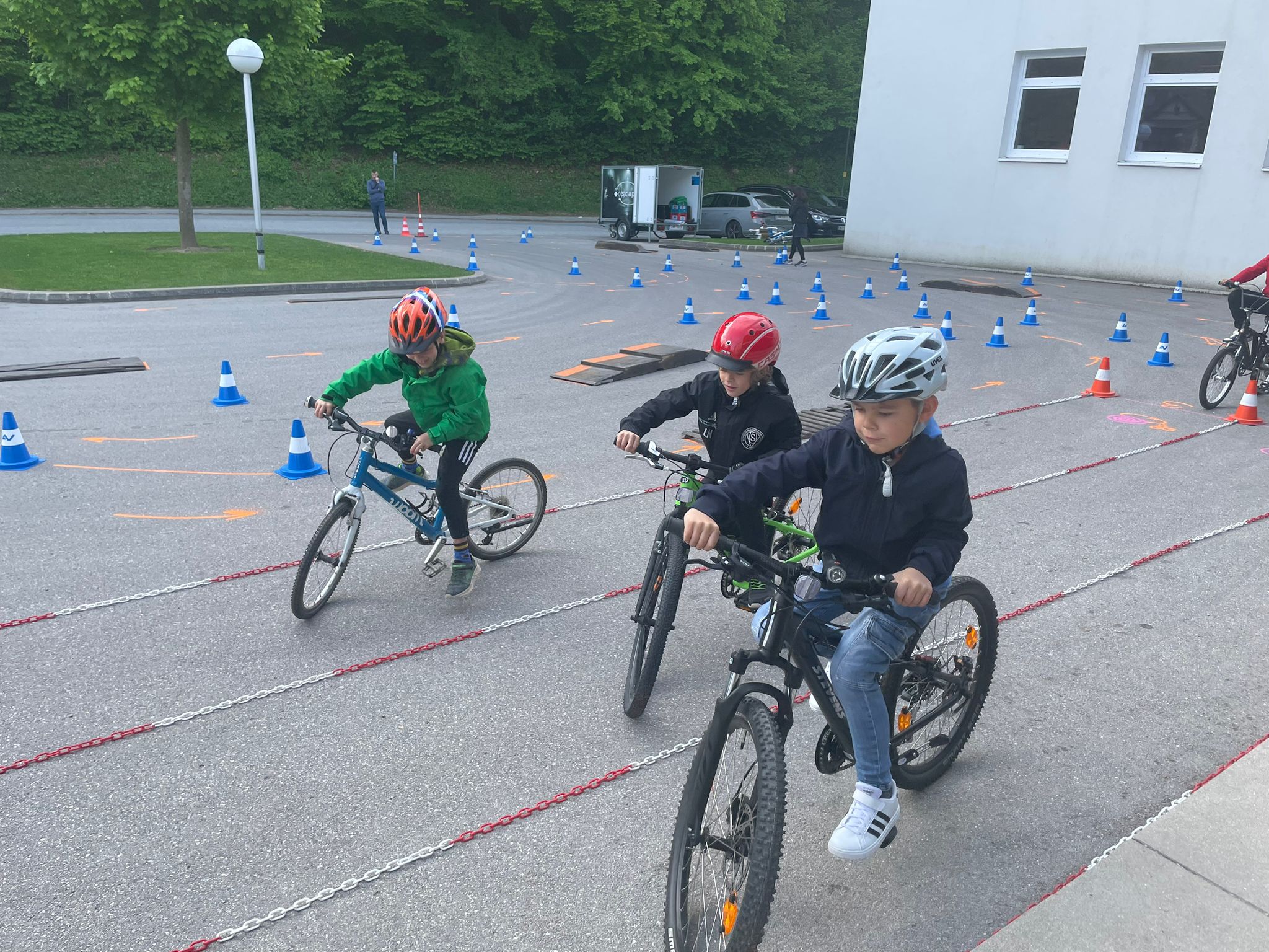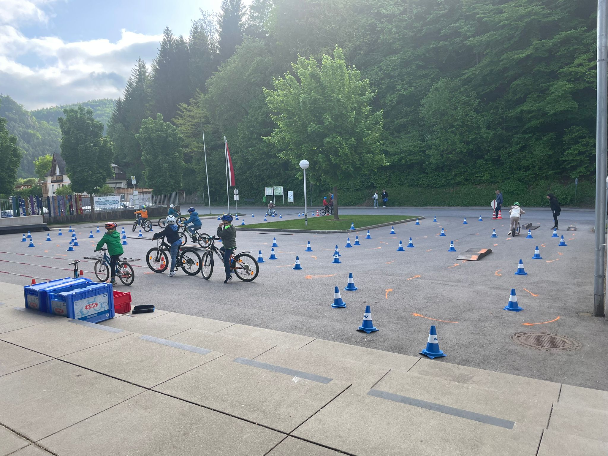 Der AUVA-Radworkshop, eine vom Land NÖ und der AUVA finanzierte Sicherheitsinitiative, soll Eltern und Kinder unterstützen, sicher auf dem Fahrrad unterwegs zu sein. Dazu gehören spezielle Geschicklichkeitsübungen und ein professioneller Rad- und Helm-Check. Trainer Bernhard Haspl erklärte sicherheitstechnische Details am Rad und die richtige Einstellung des Fahrradhelms. Anschließend ging es für die Radler an den Start des Geschicklichkeitsparcours. Dort wurde das Langsam-Fahren, das abrupte Abbremsen nach Beschleunigung und das Überwinden von Hindernissen in verschiedenen Schwierigkeitsstufen geübt.