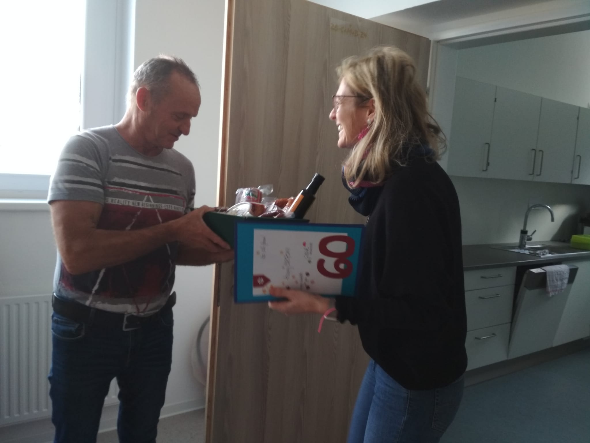Jederzeit und gerne steht unser Schulwart Willi Riegler sowohl den Kindern wie auch der Schulleitung und den Lehrkräften mit Rat und Tat und wann immer jemand Hilfe oder Unterstützung braucht, zur Seite. Daher gratulierten wir ganz herzlich zu seinem 60. Geburtstag und bedankten uns bei dieser Gelegenheit auch bei ihm. Schulleiterin Carmen Picher überreichte dem Schulwart zu seinem Ehrentag einen Geschenkekorb sowie eine Geburtstagskarte und zum Abschluss sangen ihm alle Kinder mit ihren Lehrerinnen ein fröhliches Geburtstagsständchen!